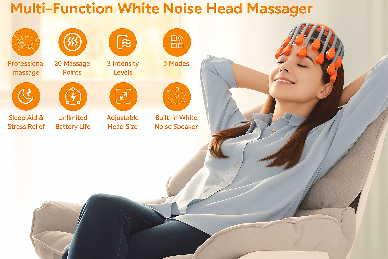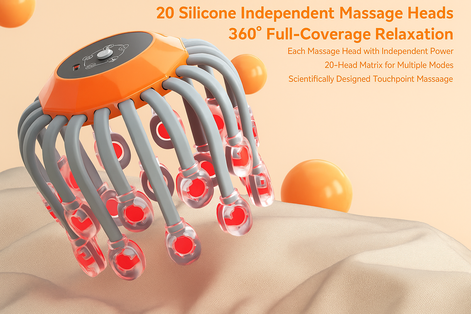 Electric Scalp Massager Head Massager Scalp with 20 Independent Massage Nodes – 5 Modes & 360° Adjustable Head Massager for Stress Relief, Scalp Relaxation, and Comfort